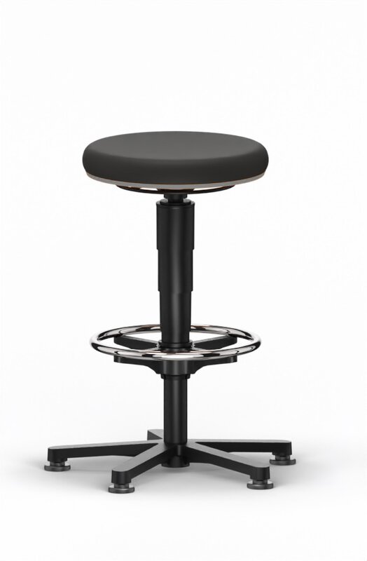 Allround Hocker 3, mit Gleiter und Fußring, Kunstleder Magic schwarz, Farbring grau