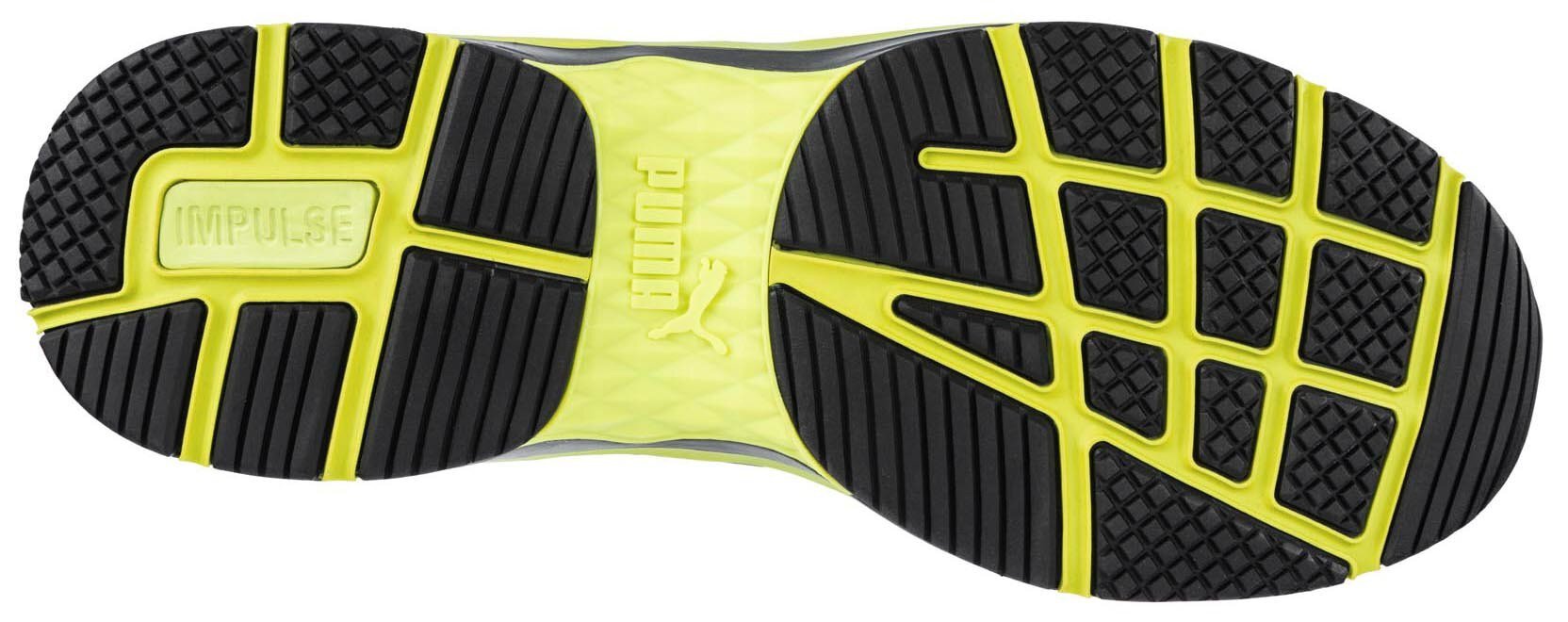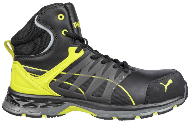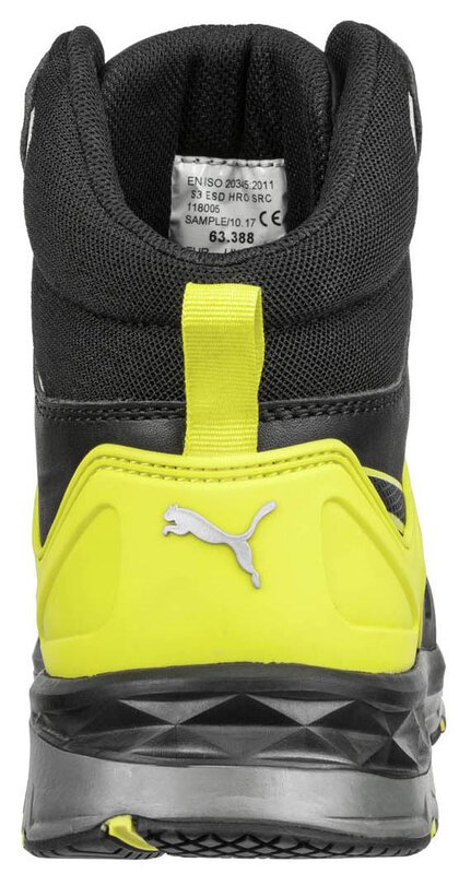NEXT LEVEL OF CUSHIONING Mit der nächsten Generation der MOTION PROTECT Linie hat PUMA SAFETY wieder genau den Puls der Zeit getroffen. Hinter der design-award verdächtigen Optik verbirgt sich ein ganzes Powerpaket an innovativer Ausstattung und Komfort. Durch die außergewöhnliche Sohlenkonstruktion mit einer zweifachgeschäumten Mittelsohle aus IMPULSE.FOAM in unterschiedlichen Dichten ist der VELOCITY 2.0 YELLOW MID für lange Arbeitstage mit viel Stehen und Laufen hervorragend geeignet. Dabei fängt der IMPULSE.FOAM® der Zwischensohle nicht nur die Aufprallkräfte ab, sondern gibt gleichzeitig bis zu 55% der Energie aktiv an den Träger zurück. Die bis zu 300°C hitzebeständige, rutschfeste Gummilaufsohle (HRO, SRC) gibt bei jedem Schritt Sicherheit und ist zudem äußerst strapazierfähig. Dank dem evercusion®BA Fußbett wird der Fuß in seiner natürlichen Abrollbewegung unterstützt. Der hoch atmungsaktive evercushion® Schaumstoff transportiert Schweiß ab und sorgt für ein angenehmes Mikroklima im Schuh. Die anatomische Form mit Längsgewölbeunterstützung schützt Gelenke und Bänder vor Verletzungen.