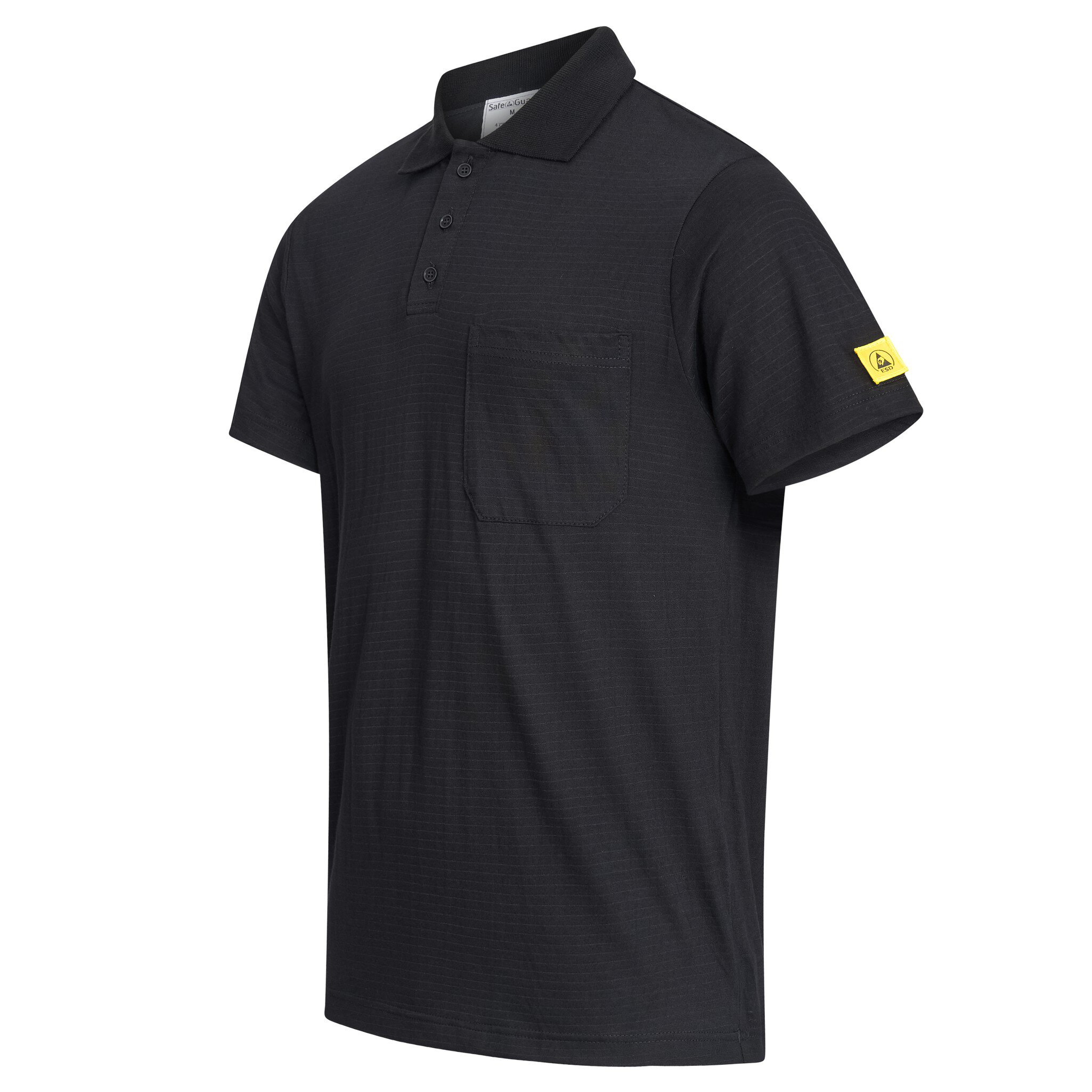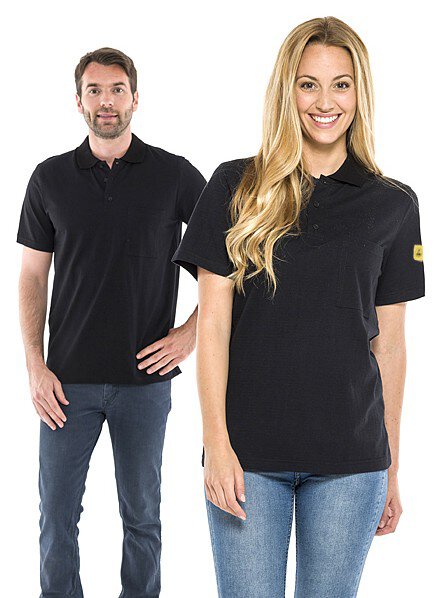 Die ESD Poloshirts PRO von SafeGuard überzeugen mit ihrer herausragenden Qualität und Funktionalität. Mit einer Brusttasche für praktische Aufbewahrungsmöglichkeiten und dem ESD Logo auf dem Ärmel setzen sie in Sachen ESD-Schutz neue Maßstäbe. Der Polo-Kragen und die Knopfleiste verleihen diesem schwarzen Poloshirt eine elegante Note. Hergestellt aus 96% Baumwolle und 4% Carbonfaser bietet es nicht nur Komfort, sondern auch Zuverlässigkeit im ESD-Bereich. Mit einem Flächengewicht von 150g/m² sind die ESD Poloshirts PRO von SafeGuard angenehm leicht und dennoch strapazierfähig. Der Ableitwiderstand von 10⁵ - 10⁷ Ohm gewährleistet optimalen Schutz vor elektrostatischer Aufladung. Ob in der Elektronikfertigung oder anderen sensiblen Bereichen - mit diesem Poloshirt sind Sie stets gut geschützt. Entdecken Sie jetzt die erstklassige Kombination aus Komfort, Funktionalität und Stil mit den ESD Poloshirts PRO von SafeGuard. Setzen Sie auf Qualität und Sicherheit - setzen Sie auf SafeGuard.