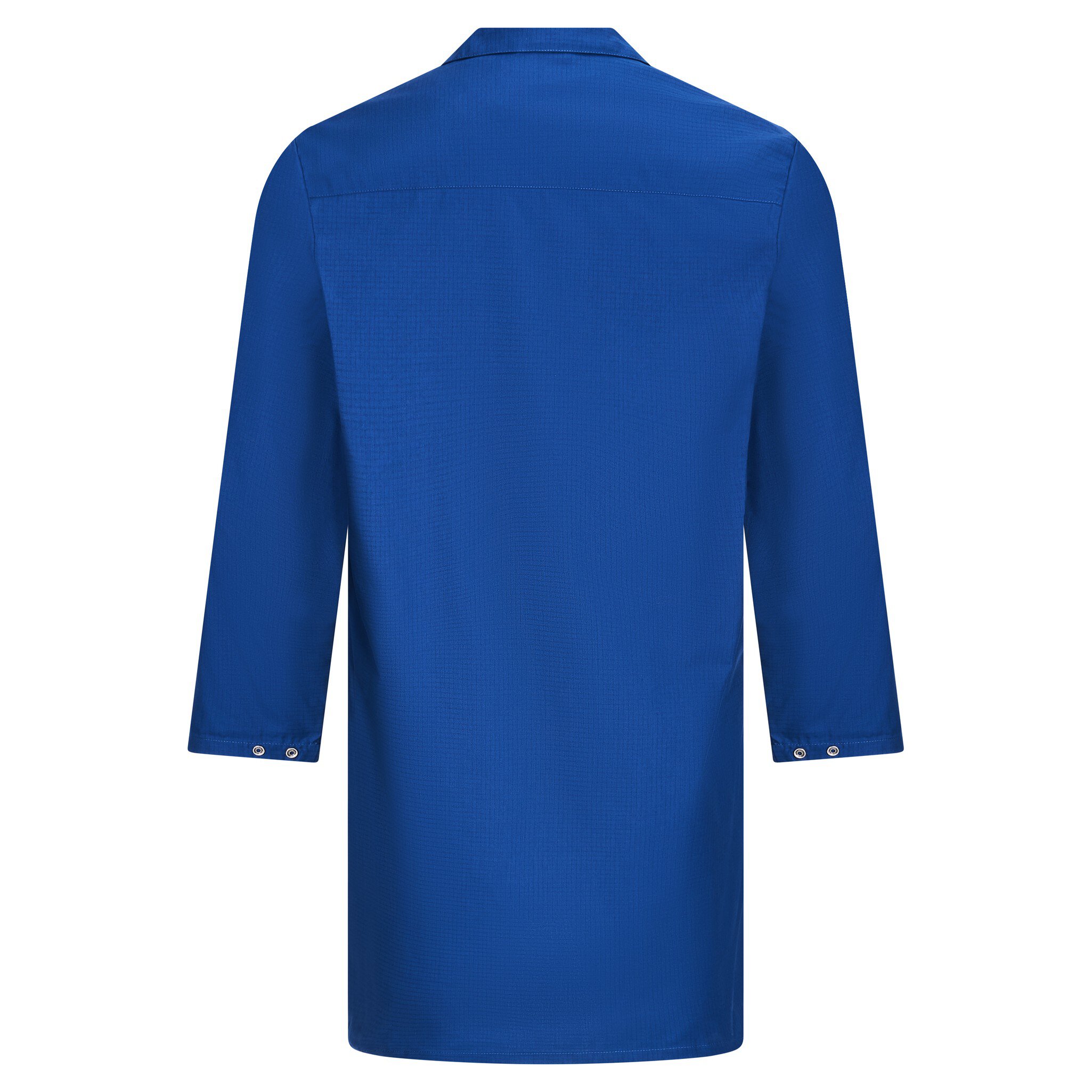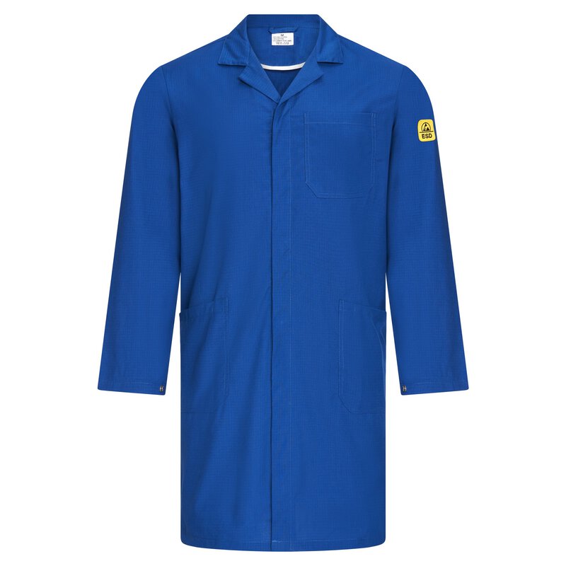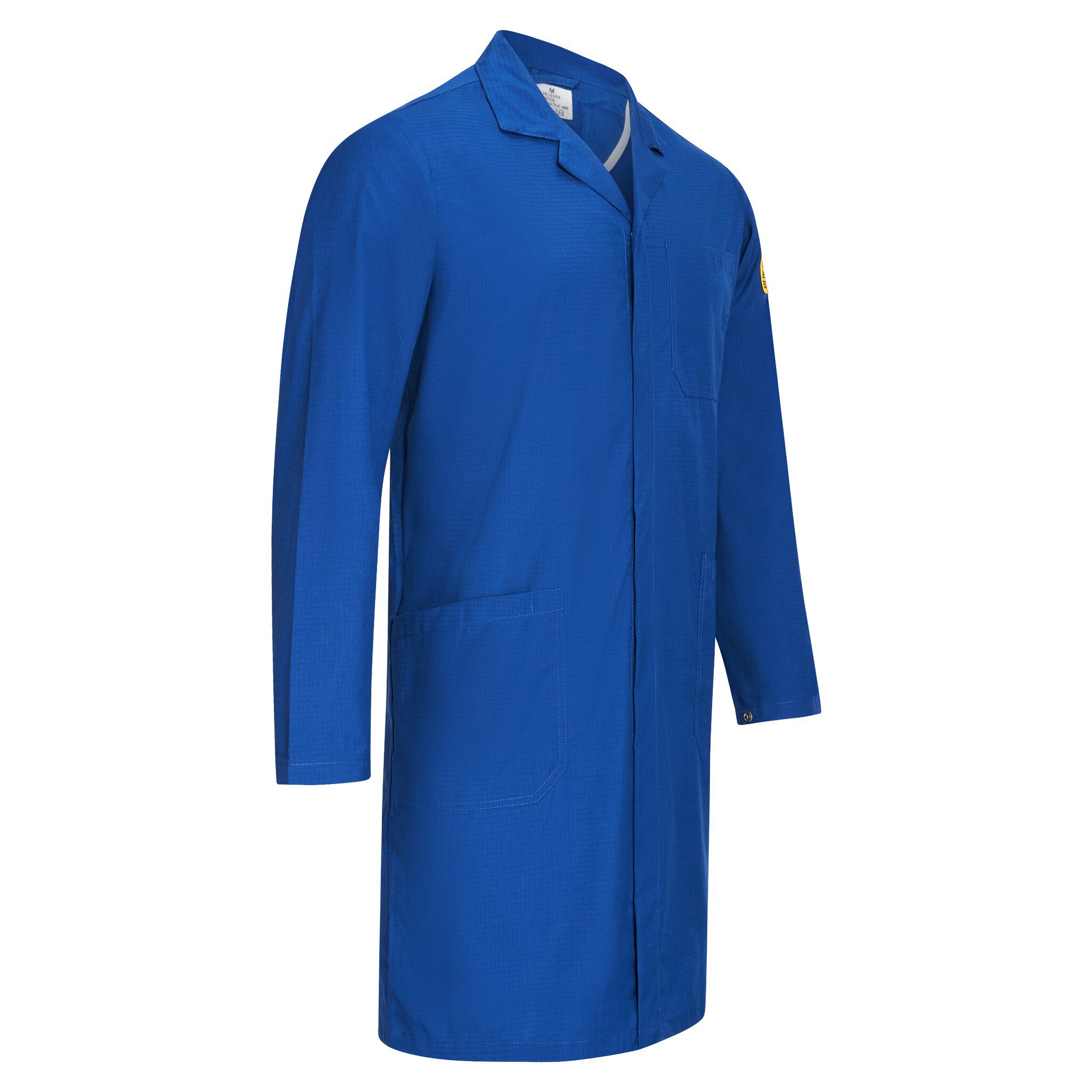 Mit 2 Seitentaschen, Druckknöpfen an den Ärmeln und dem ESD-Logo auf dem Ärmel ist dieser ESD-Kittel nicht nur funktional, sondern auch stilvoll und professionell. Der Reverskragen, die verdeckte Knopfleiste und die Knopfreihe mit Stoffabdeckung verleihen dem ESD-Kittel eine edle Optik, während die langen Ärmel aus 63% PES, 33% Baumwolle und 4% karbonisiertem Garn höchsten Tragekomfort bieten.