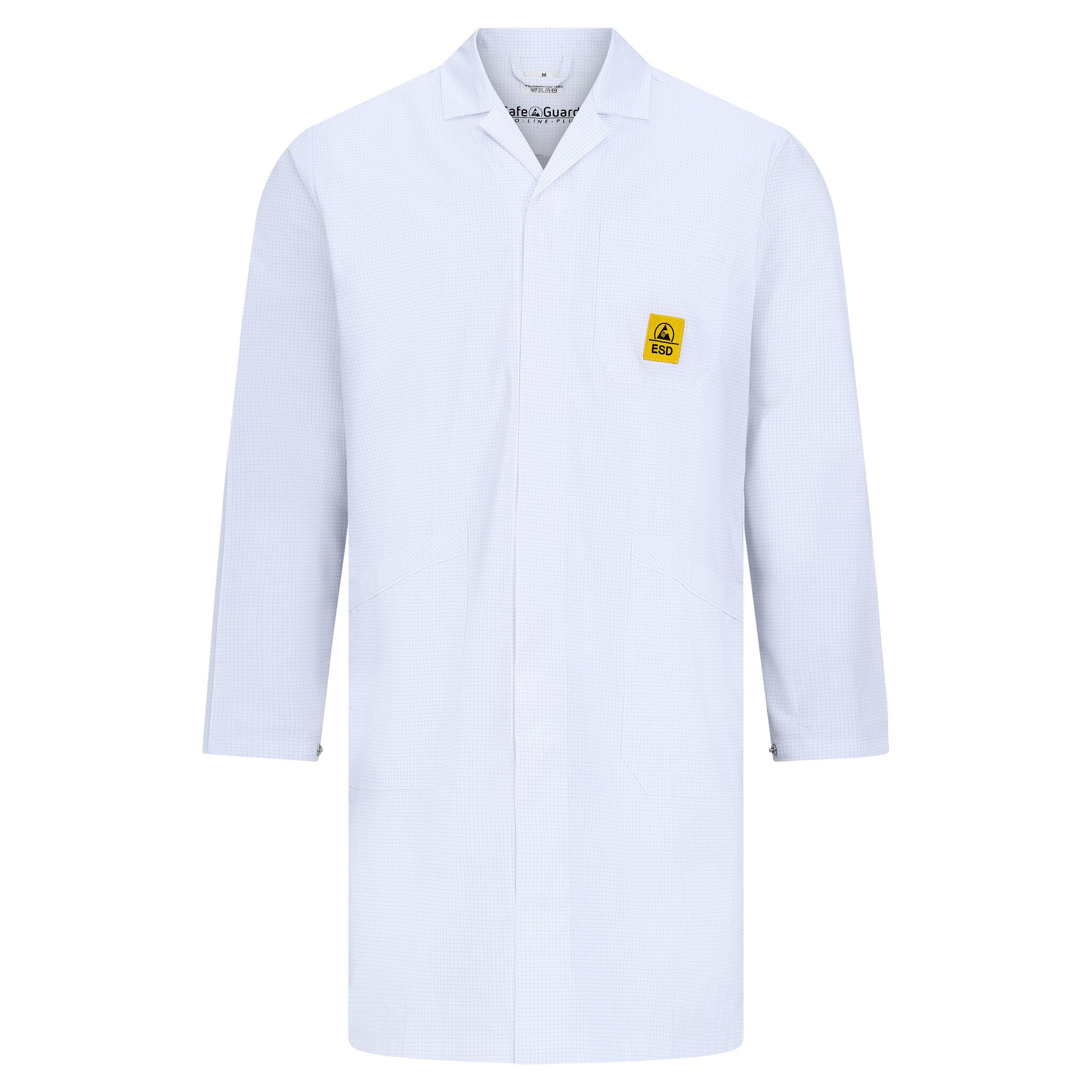 Entdecken Sie den SafeGuard ESD-Arbeitsmantel Pro Line PLUS - die perfekte Kombination aus Funktionalität und Stil. Mit seiner unisex Ausführung und der 3/4 Konfektionslänge bietet dieser ESD-Kittel eine universelle Passform und maximalen Komfort. Das leitfähige Garn mit einem 3,5 x 3,5 mm Raster gewährleistet einen typischen Punkt-zu-Punkt-Widerstand von Rp-p = 10⁶ -10⁷ Ohm, was Ihnen eine zuverlässige ESD-Schutzfunktion garantiert.