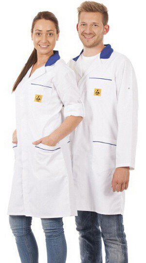ESD Arbeitsmantel, unisex, weiß/blau, 3/4 Länge, XL