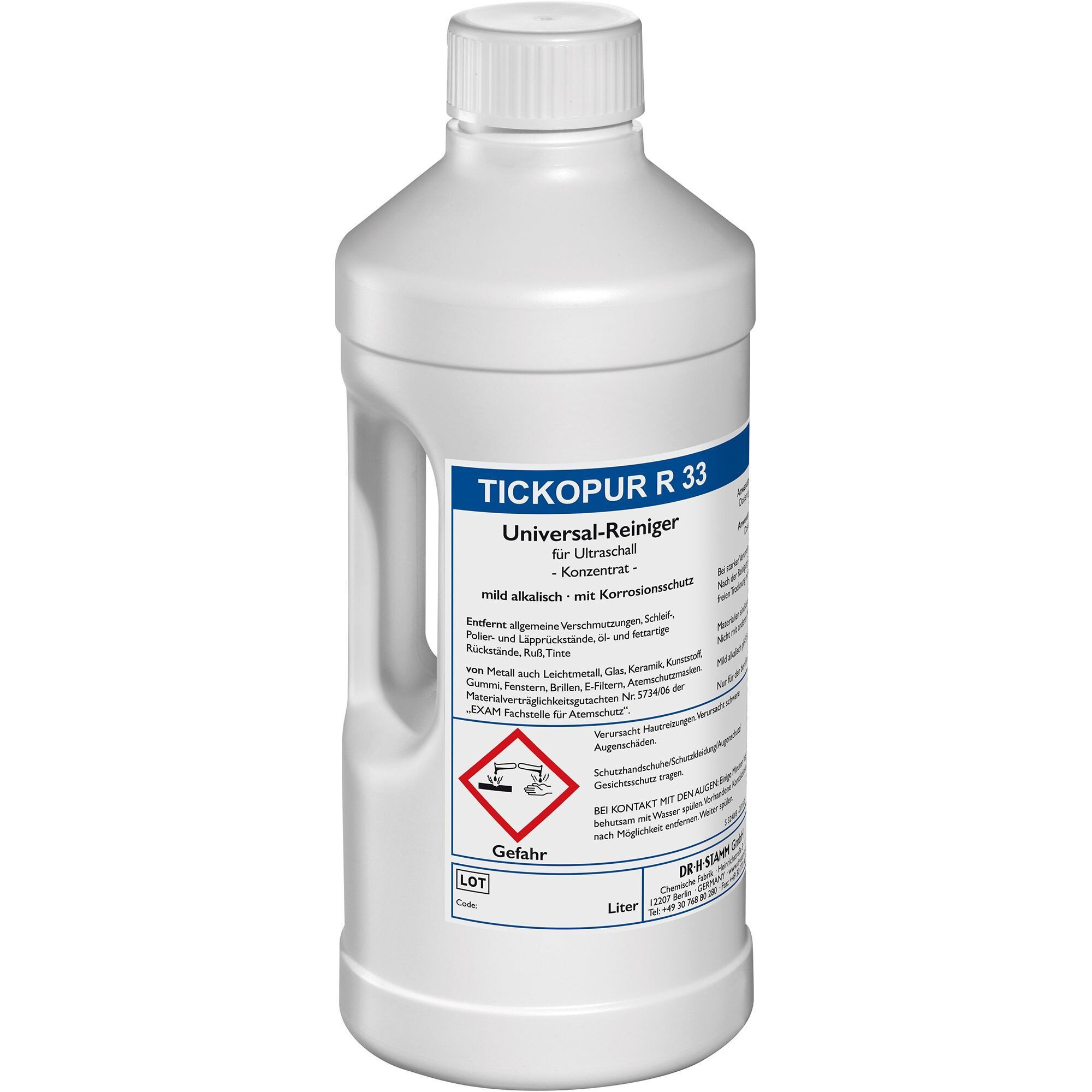 TICKOPUR R 33 ist speziell für die Reinigung in SONOREX-Ultraschallgeräten, aber auch zur Tauch-, Wisch und Hochdruckreinigung einzusetzen. Bei sachgemäßer Anwendung wird eine schnelle und materialschonende Reinigung gewährleistet.