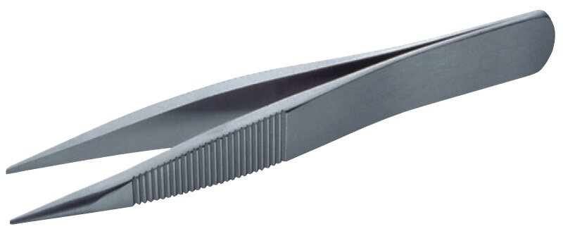 • Pinzette mit starken Spitzen und geriffelten Greifflächen