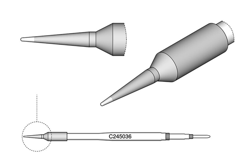 Die JBC C245036 Lötspitze konisch 0,5mm aus der bewährten C245‑Serie bietet beste Ergebnisse für feine Lötarbeiten im Elektronikbereich. Entwickelt für den Einsatz mit T245‑Handgriffen, überzeugt sie durch optimale Wärmeentwicklung und präzise Lötspitze – perfekt für SMD‑Bauteile, aber auch ideal geeignet für starke Leiterflächen („ground plane soldering“). Dank der Long‑Life‑Technologie von JBC profitieren Sie von einem schnellen Aufheizen, exzellentem Wärme‑Transfer und einer beeindruckenden Langlebigkeit – bis zu fünfmal höher als bei herkömmlichen Lötspitzen. Die robuste konische Spitze mit einem Durchmesser von 0,5mm ermöglicht höchste Präzision bei feinsten Lötkontakten. Ob beim professionellen Elektronik‑Repair, in der Lötwartung oder bei anspruchsvoller Feinlötung – mit der C245036 erreichen Sie jederzeit zuverlässige und reproduzierbare Lötergebnisse.