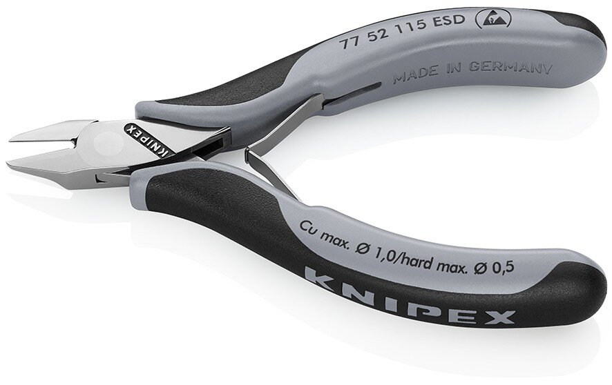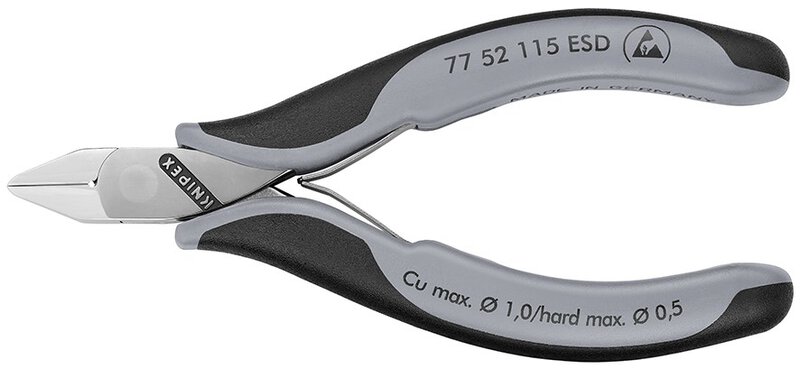 ESD Elektronik-Seitenschneider, spitz und flach, ohne Facette, 115 mm