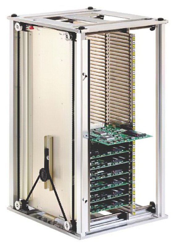 Leiterplattenmagazine Serie 700: Variable Breiteneinstellung durch Zahnriemen von Hand