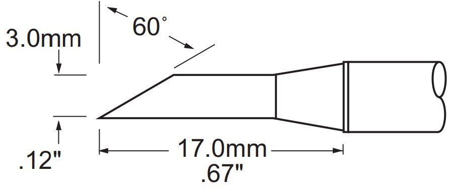 Lötspitze PHT-Serie, hufförmig 60°, 3 x 17 mm