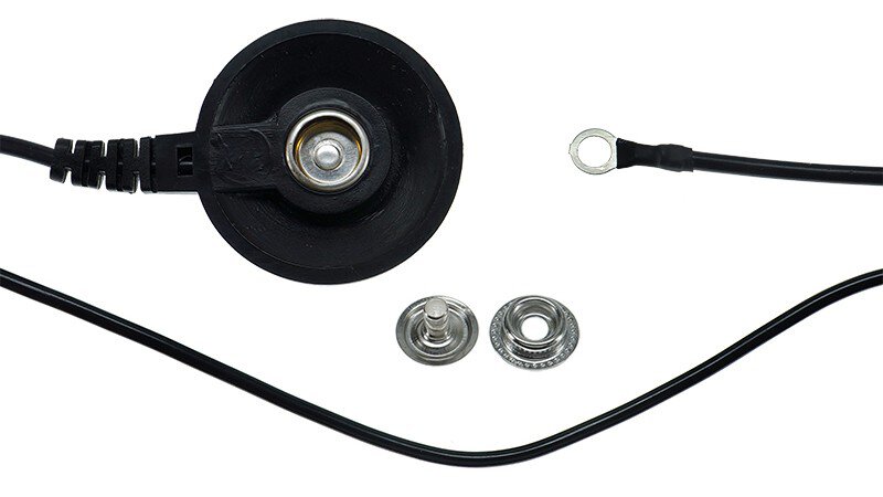 ESD-Erdungskabel, 10 mm Druckknopf/ 4 mm Öse, schwarz, 1,8 m