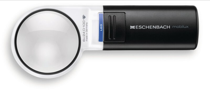 Taschenleuchtlupe mobilux® LED, asphär. 6x, 24 dpt., D=58 mm