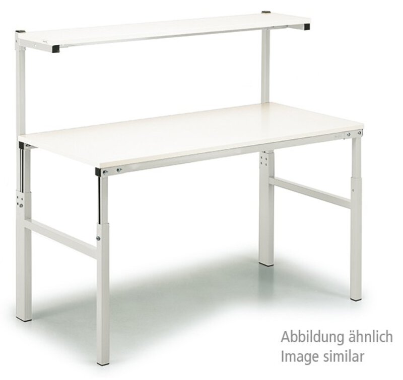• Arbeitstisch mit Aufbauprofilen und einem laminierten Etagenbord