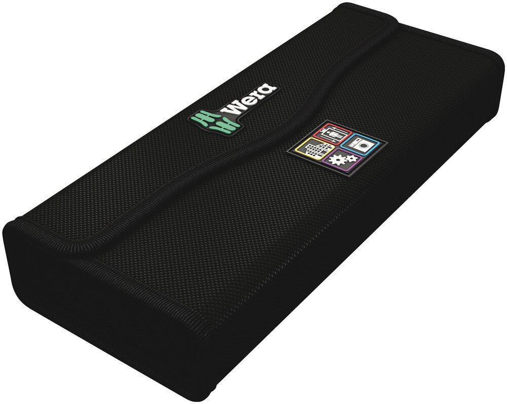 Kompaktes Werkzeug-Set mit den 35 wichtigsten Schraubwerkzeugen für Wartungsarbeiten im Innen- und Außenbereich. Mit VDE Handhalter samt 12 VDE Klingen; 1 Joker Doppelmaulschlüssel mit Haltefunktion, Endanschlag, kleinem Rückholwinkel und extrem zupackenden Zähnen; mit der unglaublich schnellen 1/4" Knarre Zyklop Speed samt Zubehör; 8 Hand- und Maschinennüssen Größe 5,5-13, 1 Universalbitshalter; 7 25mm Bits; 1 Schraubkralle zum Festhalten von Schrauben; 1 Spannungsprüfer 247; textile Box mit sehr hoher Robustheit und Langlebigkeit; aufrecht positionierbar zur übersichtlichen Lagerung im Werkstattregal; zusätzlicher Oberflächenschutz durch textiles Außenmaterial; geringes Gewicht und Volumen für vereinfachte Mobilität.