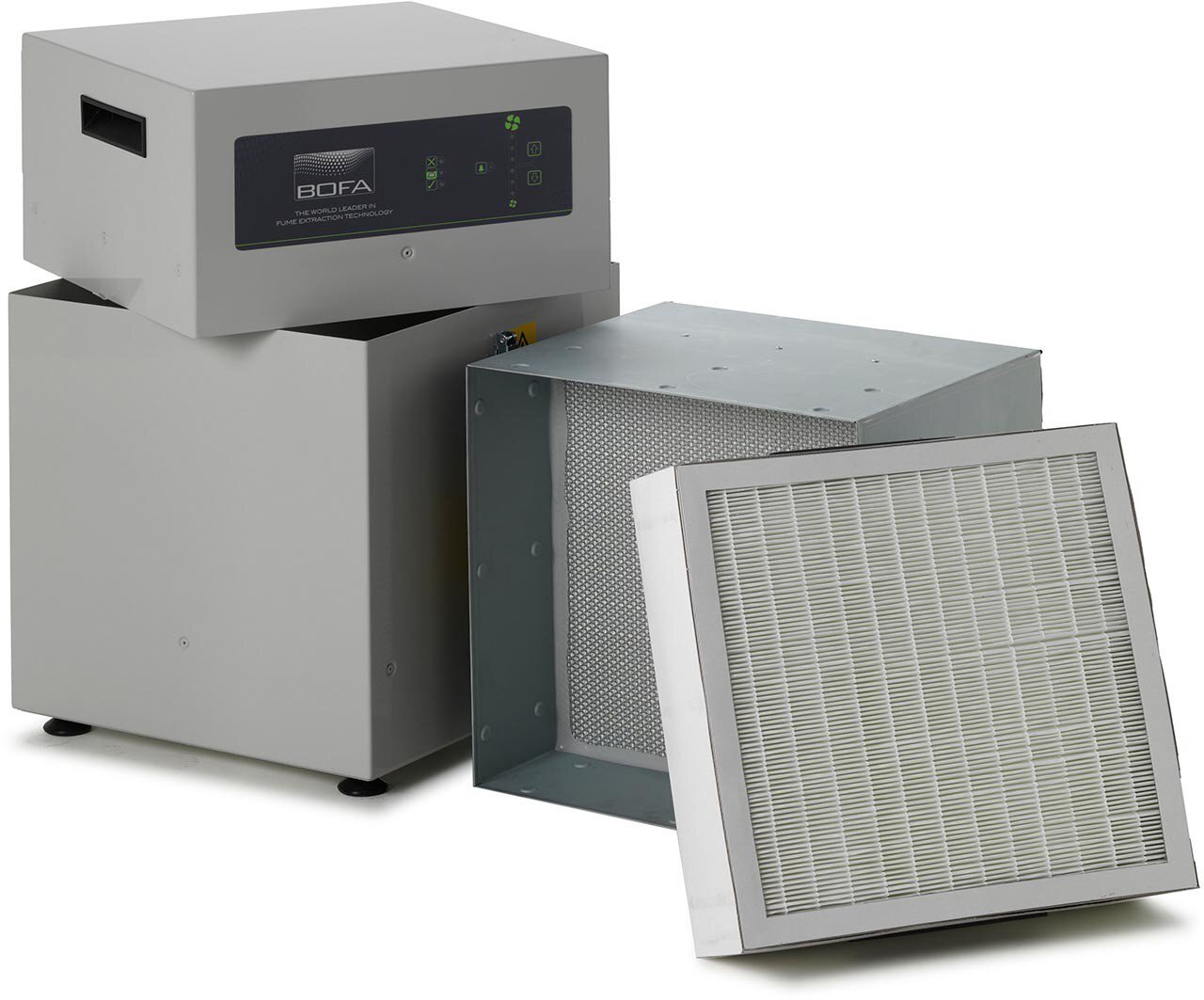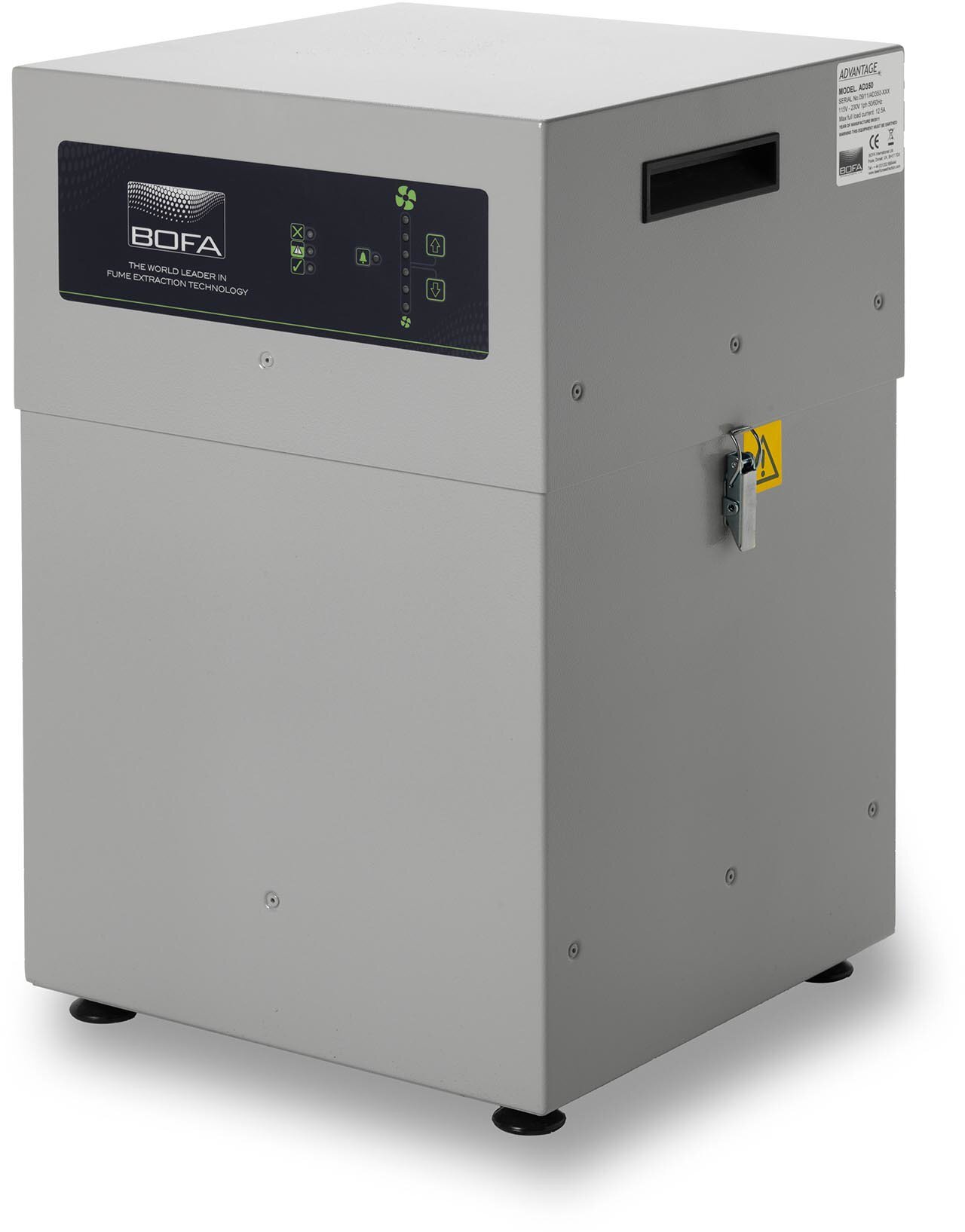 Rauchabsaugsystem für leichte Anwendungen der Laserbeschriftung, -codierung und -gravur. Das Absaug- und Filtersystem Advantage 350 von BOFA entfernt effektiv potenziell schädliche Dämpfe und Feinstaub, die während des Laserbeschriftungs prozesses entstehen. Durch die Aufrechterhaltung eines staubfreien Betriebsbereiches hilft das System, wertvolle Geräte zu schützen, eine Beschriftung von kontinuierlich höherer Qualität zu erreichen, die Ausschussraten zu verringern sowie Schadstoffe zu reduzieren. Das geräuscharme und kompakte Advantage 350-System ist ideal für bei den Einsatz leichten Laserbeschriftungsanwendungen unter anderem in Schulen, Schilderwerkstätten und der Kleinindustrie geeignet.