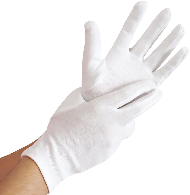 Baumwollhandschuhe Blanc gedoppelt von Hygostar: Der Baumwollhandschuh BLANC GEDOPPELT besteht aus einem weißen Baumwoll-Gemisch in leichter Qualität. Der BLANC GEDOPPELT ist sehr fein gearbeitet und hat geschichtelte Finger. Die Finger, die Handflächen und die Daumen sind gedoppelt. Er ist der ideale Unterziehhandschuh und bei bis zu 60°C waschbar. Der BLANC GEDOPPELT wird gerne in der Montage und als Unterziehhandschuh beim Verwenden von Reinigungshandschuhen oder Anfassen von heißem Geschirr verwendet. Er eignet sich aber auch zum fleckfreien Eindecken von Bestecken.