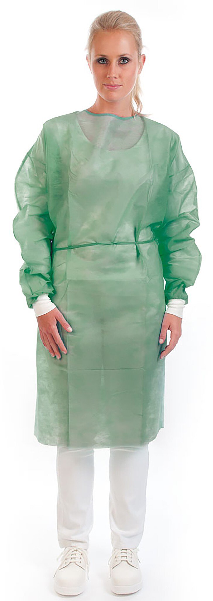 Der Kittel aus PP bietet einen leichten Schutz vor Flüssigkeiten. Er ist großzügig geschnitten und ermöglicht so eine vollflächige Abdeckung und große Bewegungsfreiheit. Der Kittel verfügt über Verschlussbänder an der Taille und am Hals sowie über Ärmelbündchen. Die Bündchen am Arm sorgen dafür, dass der Einwegkittel bequem und gut sitzt. Dieser Kittel ist vielseitig einsetzbar und ideal für Krankenhäuser und Pflegeeinrichtungen. Hinweis: Der Schutzkittel ist nicht sterilisierbar.