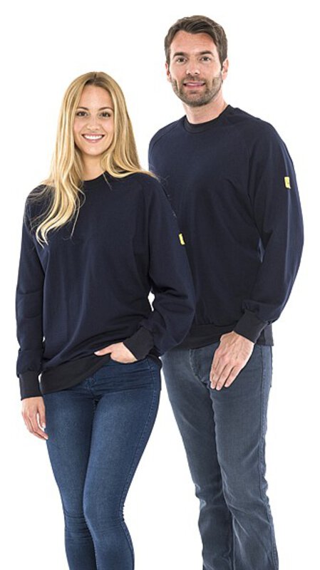 Unsere SafeGuard ESD Sweatshirts sind die ideale Wahl für ein angenehmes Tragegefühl und sicheren Schutz vor elektrostatischer Entladung. Das blaue Unisex-Sweatshirt mit langen Ärmeln und Rundhalsausschnitt bietet nicht nur Komfort, sondern erfüllt auch die Anforderungen der DIN EN 61340-5-1. Dank des typischen Oberflächenwiderstands von 10⁵ - 10⁷ Ohm und des ESD Logos auf dem linken Ärmel sind Sie optimal geschützt. Die Strickbündchen an den Ärmeln und am Saum sorgen zudem für eine perfekte Passform. Hergestellt aus 48% Baumwolle, 48% Polyester und 4% Carbonfaser bei einem Flächengewicht von 280 g/m² bietet dieses Sweatshirt die optimale Kombination aus Komfort, Funktionalität und Sicherheit. Gönnen Sie sich das Beste mit SafeGuard!