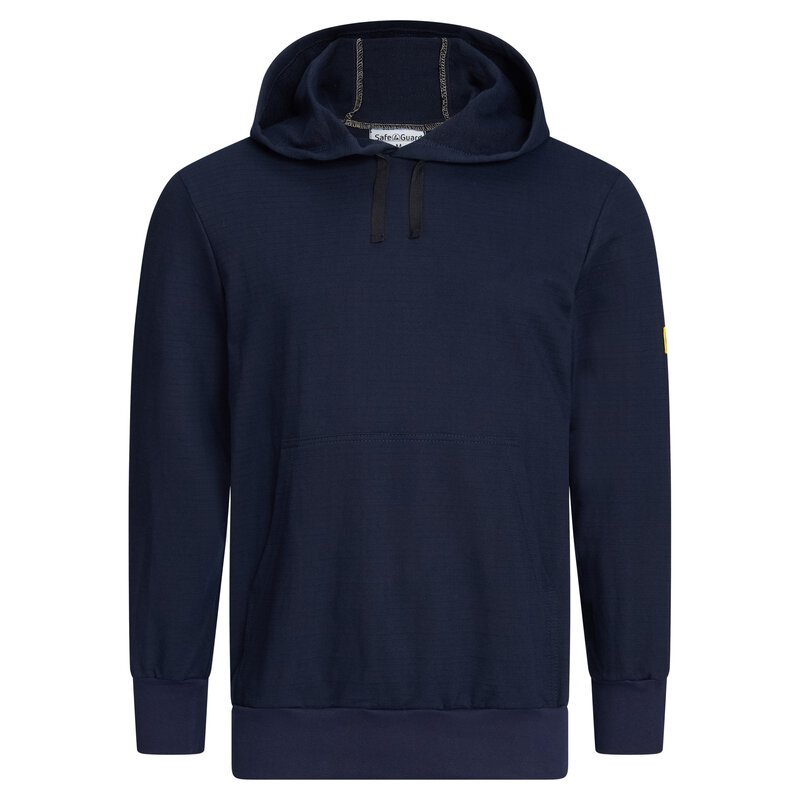 Unsere SafeGuard ESD Sweatshirts sind die ideale Wahl für alle, die Komfort und Qualität schätzen. Mit dem ESD Logo auf dem linken Ärmel und den stilvollen Strickbündchen an den Ärmeln und am Saum bieten sie nicht nur eine angenehme Passform, sondern erfüllen auch die Anforderungen der DIN EN 61340-5-1. Das langärmelige Sweatshirt in Blau ist unisex und verfügt über eine Kapuze für zusätzlichen Komfort. Hergestellt aus 48% Baumwolle, 48% Polyester und 4% Carbonfaser, mit einem Flächengewicht von 280 g/m². Der typische Oberflächenwiderstand liegt zwischen 10⁵ Ohm und 10⁷ Ohm. Hol dir jetzt dein SafeGuard ESD Sweatshirt und erlebe Stil und Funktionalität in einem Produkt!