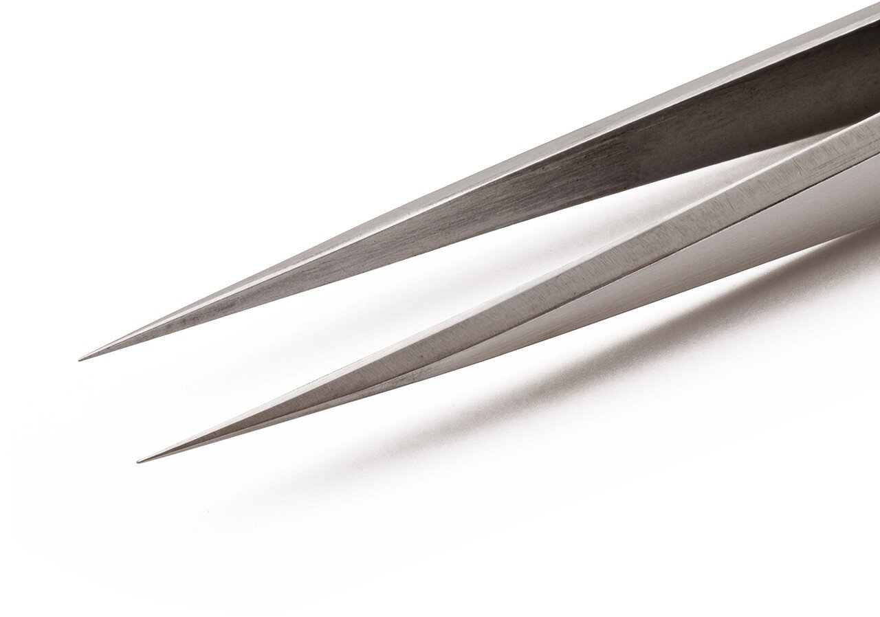 Präzisionspinzette mit langen Spitzen für Präzisionsarbeit an Leiterplatten.