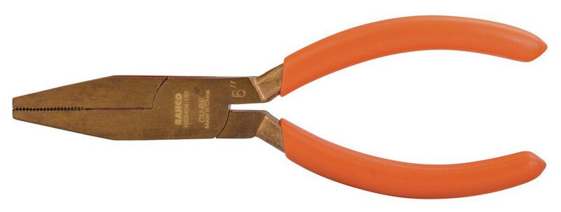 Funkenfreie Werkzeuge werden in Bereichen eingesetzt, in denen durch Funkenflug eine potenzielle Feuer- und Explosionsgefahr besteht. Flachzange aus Kupferberyllium, funkenfrei, 150 mm.