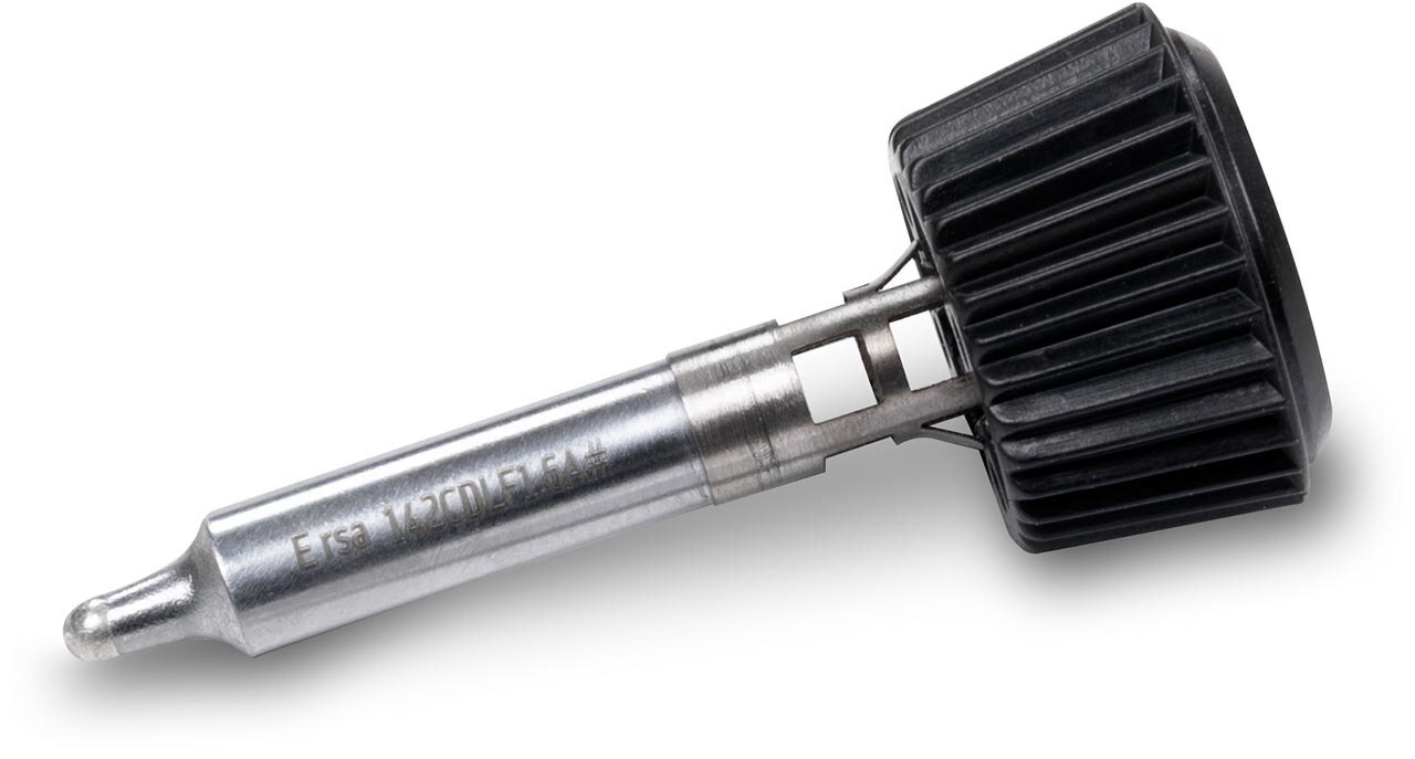 Tip'n'Turn ist das patentierte Konzept für die Vereinigung von Lötspitze und Heizelement. Der Bajonettverschluss ermöglicht einen schnellen Wechsel der Lötspitze selbst im heißen Zustand, entweder mit Hilfe des Ablageständers 0A58 oder von Hand.