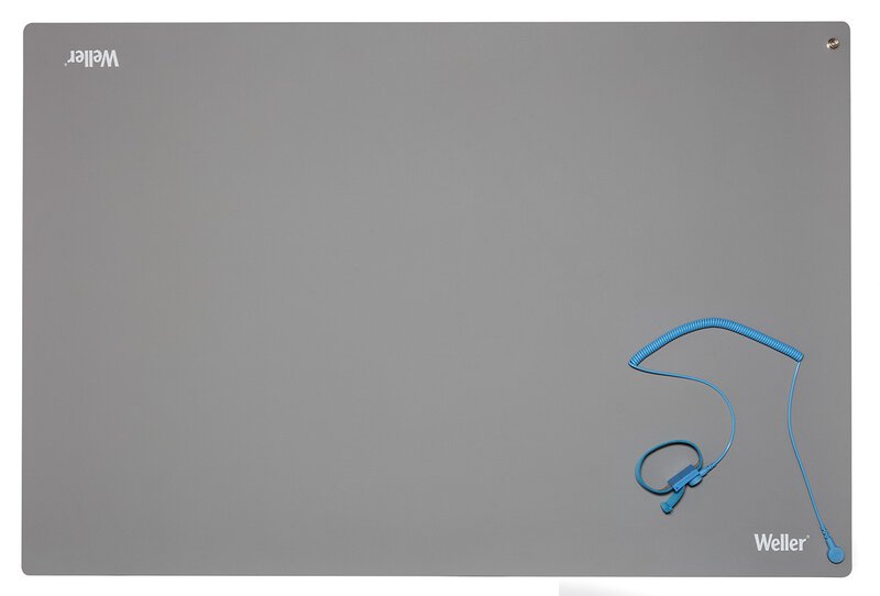 Das ESD Tischmatten Set ist mit einer hochwertigen ESD Tischmatte und dem passenden Zubehör bestückt, um einen ESD-sicheren Arbeitsplatz auszustatten. Die Matte ist unter anderem hitze-, lötzinn-, öl- und chemikalienbeständig. Beinhaltet sind zudem ein ESD Armband mit 10 mm Druckknopf, ein Spiralkabel mit 1 MOhm sowie zwei 10 mm Druckknöpfe.