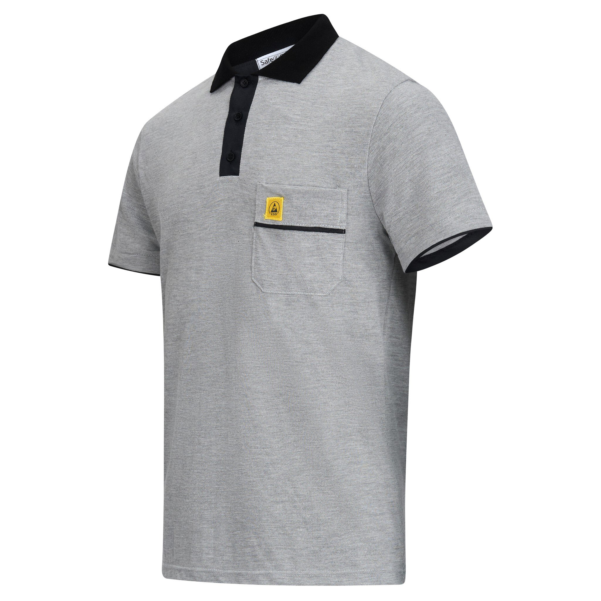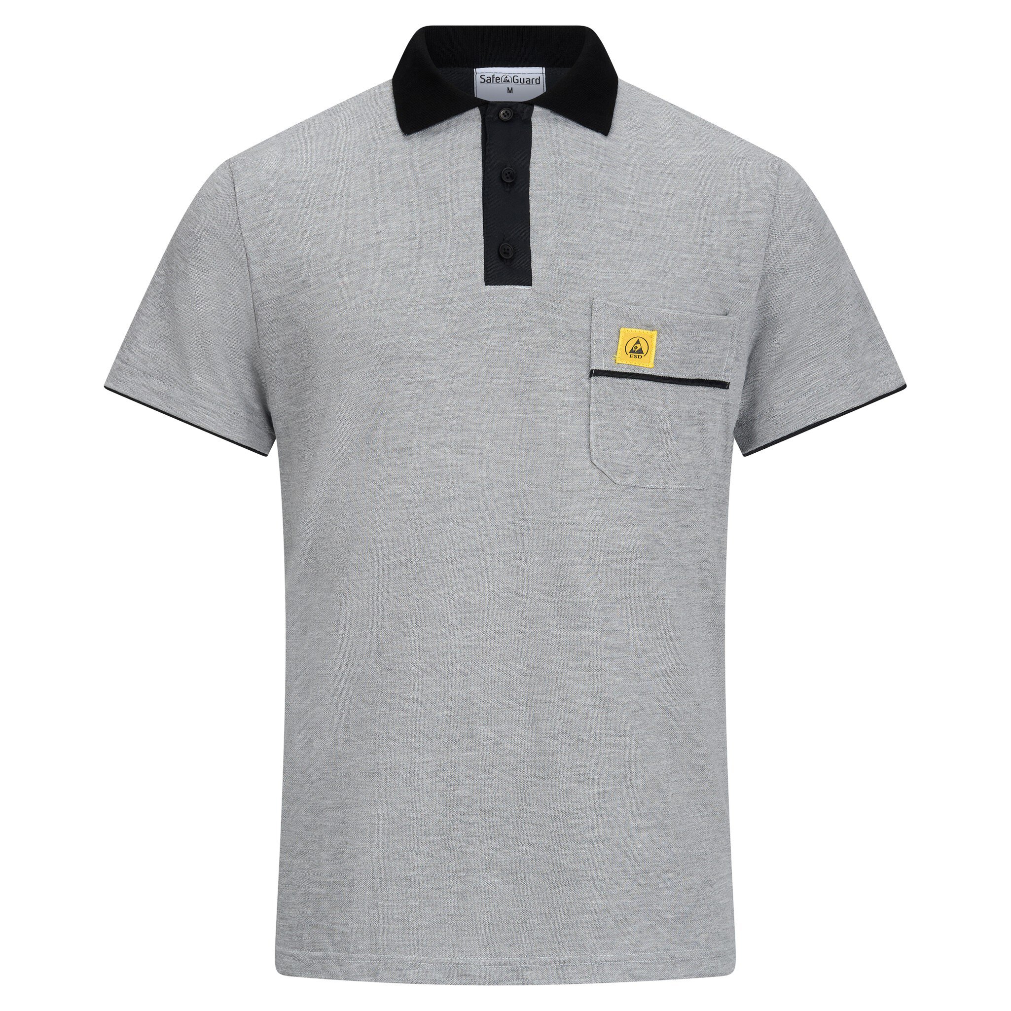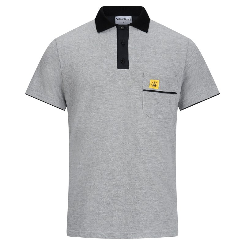 Das SafeGuard ESD Poloshirt PRO PLUS in Hellgrau/Schwarz ist nicht nur ein Arbeitskleidungsstück, sondern ein Statement für Fachkompetenz und Sicherheit. Mit seinem markanten schwarzen Kragen und dem ESD Logo auf der Brusttasche vereint es Stil und Funktionalität. Das Flächengewicht von 210g/m² sorgt für angenehmen Tragekomfort, während die eingearbeiteten Carbonfasern dem Shirt seine ableitende Eigenschaft verleihen. Die Ärmel mit schwarzem Bund und die praktische Brusttasche machen dieses Poloshirt zu einem unverzichtbaren Begleiter in der Elektronikfertigung. Es erfüllt die strengen Anforderungen der DIN EN 61340-5-1 und garantiert somit zuverlässigen Schutz vor elektrostatischen Entladungen. Der stilvolle Polo-Kragen und die Knopfleiste verleihen dem Shirt eine professionelle Optik. Hergestellt aus hochwertigen Materialien - 50% Baumwolle, 47% Polyamid und 3% Carbonfaser - bietet das ESD Poloshirt PRO PLUS eine hervorragende Kombination aus Komfort und Funktionalität. Mit einem Ableitwiderstand von 10⁵ - 10⁷ Ohm setzt dieses Shirt neue Maßstäbe in punkto Sicherheit und Leistung. Sichern Sie sich jetzt das SafeGuard ESD Poloshirt PRO PLUS und zeigen Sie Ihre Expertise in Sachen ESD-Schutz und Elektronikfertigung. Ein Must-Have für alle, die Qualität, Stil und Sicherheit zu schätzen wissen.