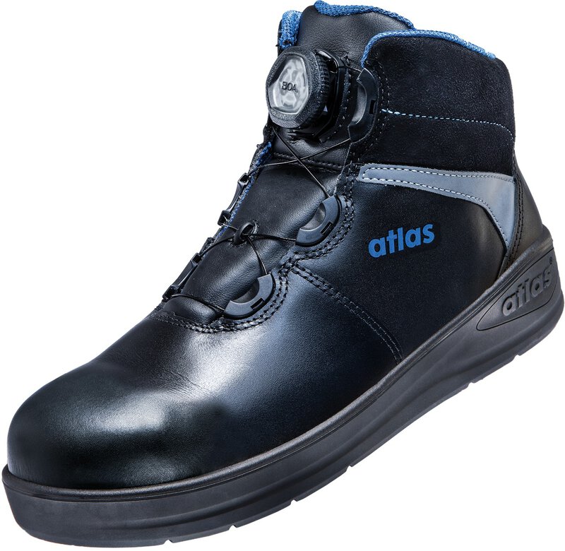 Die anatomisch geformte Stahlkappe schützt den Fuß im Zehenbereich vor Stoßeinwirkung von min. 200 Joule und einer Druckbeanspruchung von min. 15 kN, gemäß EN ISO 20345:2012. Gerade im Arbeitsalltag, bei hohen körperlichen Belastungen, werden temperaturregulierende Eigenschaften nicht nur verlangt, sondern erwartet. Das aktiv-X Funktionsfutter steht für höchste Qualität, innovativer Technologie und bietet dem Träger eine dauerhafte, aktive Feuchtigkeitsregulierung. Das aktiv-X Funktionsfutter wirkt feuchtigkeitsregulierend und sorgt dafür, dass die Schuhe schnell wieder trocknen. Es färbt nicht ab, ist hautfreundlich und scheuerbeständig. Gesünder Arbeiten mit der richtigen Dämpfung. Das neue MPU-REBOUND-SYSTEM von ATLAS® ermöglicht ein spürbar schonendes und ermüdungsfreies Laufen. Die Grundlage für diesen hervorragenden Laufkomfort bildet das innovative Sohlensystem und bietet Druckentlastung, Dämpfung und Dynamik für den Träger.Hierfür sorgt das perfekte Zusammenspiel aus einer druckentlastenden Einlegesohle und der leichten und reakationsfreudigen MPU-Schaum.