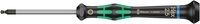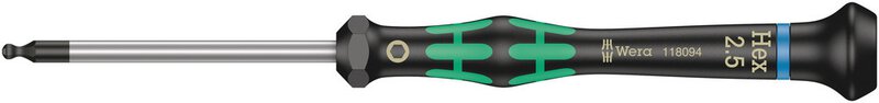 Hochwertiger Wera Micro Schraubendreher für feinmechanische Verschraubungen. Kugelkopfprofil: Durch die kugelförmigen Abtriebsprofile ist ein Auslenken oder Schwenken der Werkzeugachse zur Schraubenachse möglich, so dass dadurch "um die Ecke" geschraubt werden kann. Durch Abstützen der Hand auf der Drehkappe und durch die Schnelldrehzone unterhalb der Drehkappe ist blitzschnelles Zwirbeln möglich. Zeitintensives Umgreifen entfällt. Kraftzone mit integrierten Weichzonen sorgt für die Übertragung hoher Löse- und Anzugsmomente. Präzisionszone für den richtigen Drehwinkel bei Justierarbeiten. Die Wera Black Point-Spitze bietet Passgenauigkeit und optimierten Korrosionsschutz. Take it easy Werkzeugfinder mit Farbkennzeichnung nach Profilen und Größenstempelung - zum einfachen und schnellen Finden des benötigten Werkzeugs.